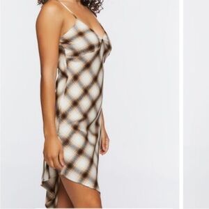 VTG 90s Y2K Forever 21 Brown Flannel Asymmetrical Babydoll Slip Dress S Western