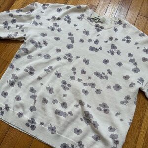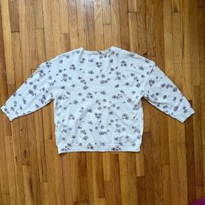 Kidichic Ivory Lightweight Purple Floral Sweater Size Large with 3/4 Sleeves