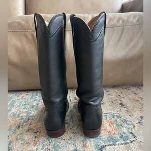 Step out in timeless Western elegance with these Tecovas “The Harper” boots in classic black. Crafted from beautiful, premium calfskin leather, these boots have been very well cared for. Main wear is scuffing at front of sole - (underside of boot) - this does help make them less slippery. A classic silhouette that pairs effortlessly with denim, dresses, or skirts. This style is no longer made and is probably the most versatile classic boot!