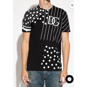 Dolce & Gabbana T-Shirt Polka Dot Stripe Logo Size EU 48 Black White