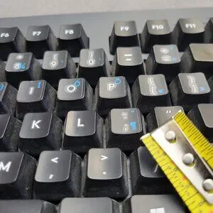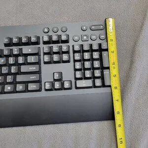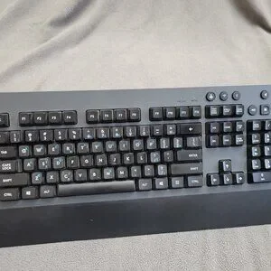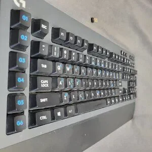 Versatile wireless keyboard for gaming or productivity. Lightspeed tech for low-latency wireless, Bluetooth multi-device pairing, and wired mode via included USB extension cable. All keys tested responsive with satisfying Romer-G Tactile feel. Custom key stickers aid special character access. Clean battery slot doubles as receiver storage for travel.