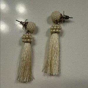 LOFT Cream Beaded Tassel Earrings