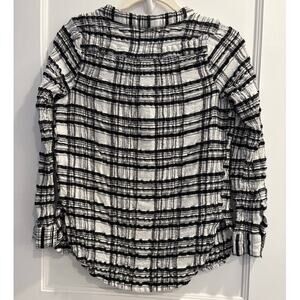 By Anthropologie Size 10 Black and White Checked Gauzy Pleated Button Up Top