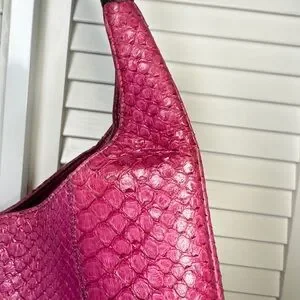 Carlos Falchi Womens Magnetic Closure Handbag Size M Snake Skin Pink Leather Y2K