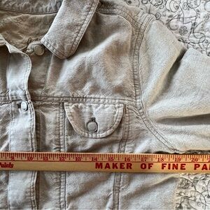 Linen/cotton light natural versatile jacket. Features button closure and front pockets. Ideal for a walk on the coast paired with your favorite jeans or skirt. Excellent condition.