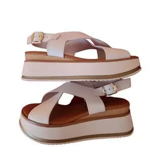 Michele Lopriore Milano Women Platform Strappy Sandals Brown White Leather EU 37