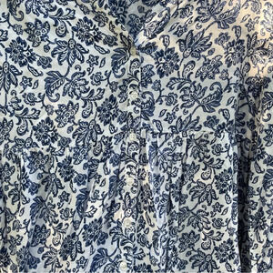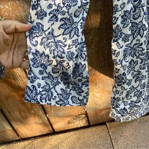 CHRISTIAN SIRIANO Women’s white Blue light weight flowered Blouse Size Medium