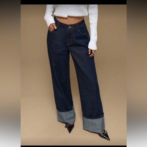Forever 21 brand new Women's Dark Blue Jeans with Gray Cuffs