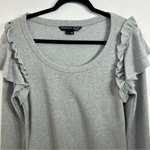 Veronica Beard Ruffled Avedon Ribbed jersey knit Long Sleeve Gray Blouse Sz M
