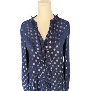 SALONI - Navy Dot Tilly Long Sleeve Ruffle Silk Dress Sz 4