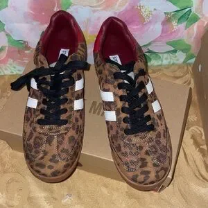 Leopard print with white stripes. Black laces. Eye-catching design.