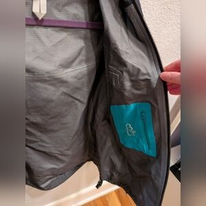 Sleek and durable Arc'teryx shell jacket with a hood, Beta LT. Ideal for outdoor activities. Features multiple zip pockets.