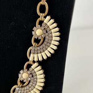J.Crew Fan Flower Statement Bib Necklace White / Ivory with Rhinestones. Goldtone chain/hardware. Appx 19" end to end.