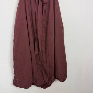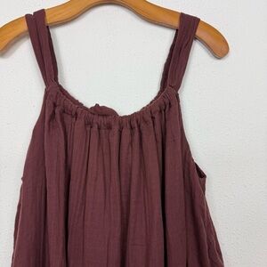 By Anthropologie Gauze Bubble-Hem Mini Dress Brown Oversized Cotton Sz Large