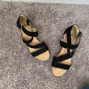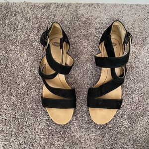 Dr Scholl's Black Wedge Summer Vacation Adjustable Strap Sandals Size 7.5