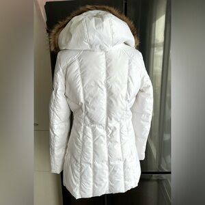 Stylish, pretty dressy MARC NEW YORK puffer jacket with hood, zippered pockets, waterproof material, warm down filling,perfect length. Really nice jacket.