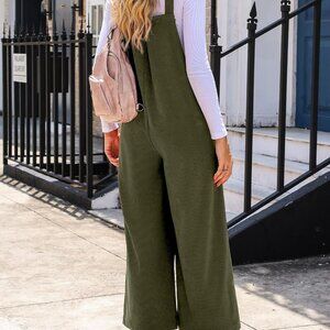 Women Corduroy Overalls Winter Fall Casual Loose Sleeveless Adjustable Strap Wid