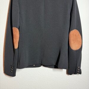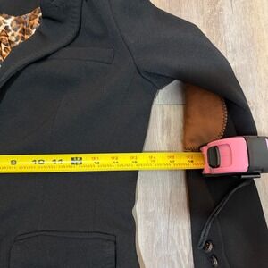 Osley Blazer Jacket Womens Black Inner Leopard Print Elbow Patches Peak Lapel.