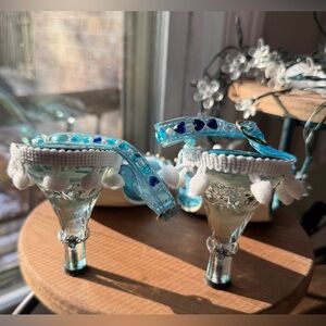Custom, handmade, one of a kind, slingback sandals in a Cinderella and Elsa/Frozen Princess theme. Lace, beading, gems, ribbons, and two Disney 925 sterling crown rings, one embellishing each heel—that’s $230 right there!). Retails for $500+. Gently used condition, please see all photos for wear, embellishments, and additional details. Size 9 USA / 40 EU / 7 UK.