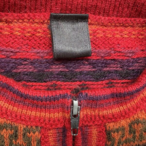 Alpaca Sweater Cardigan Multi Color Fair Isle Full Zip Zipper Sz L/XL