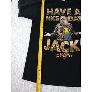 The Duck Dynasty T-Shirt for men in size Large is a classic black tee made from 100% cotton with a graphic print featuring the beloved TV show's theme of ducks and outdoors. This regular fit shirt has a crew neck and short sleeves, making it perfect for all seasons. Easy to care for with machine washable instructions, this lightweight and packable tee is a must-have for any fan of Duck Dynasty. Made by Alstyle Apparel & Activewear, this graphic tee is a comfortable and stylish addition to any man's wardrobe.