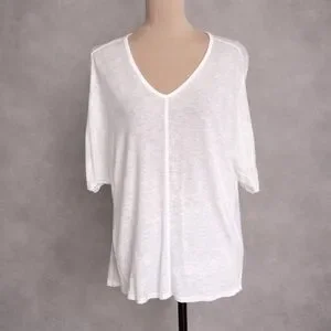 Masai Copenhagen Linen Blend Oversized White V-Neck Top Size L