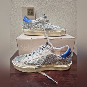 Gokden Goose Hi Star Glitter Sneakers with Blue Accents Size 38