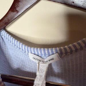 Caution To The Wind Blue White Pinstripe Tiered Fit Flare Knit Midi Dress French