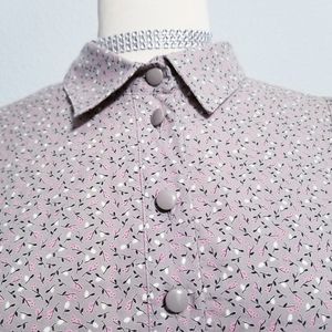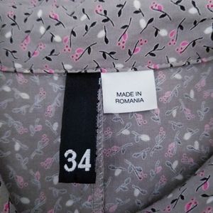 Cottagecore Floral Gray Button-Up Dress Size 34 XS