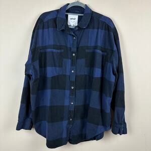 Aerie Oversized Plaid Flannel Shirt Womens XL Blue Black Button Up Cozy Granola
