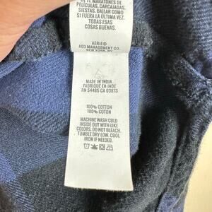 Aerie women’s oversized plaid flannel shirt in size XL. Features a soft cozy fabric, classic blue and black plaid pattern, button-front closure, and relaxed oversized fit. Perfect for layering, lounging, or casual everyday wear.