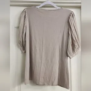 Tahari Light Beige Blouse with Pleated Sleeves
