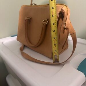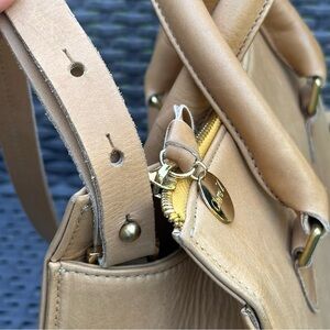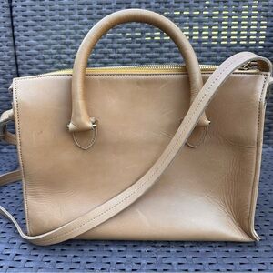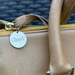 Elegant tan satchel by Clare V. Features sturdy handles and a detachable strap. Perfect for everyday use.