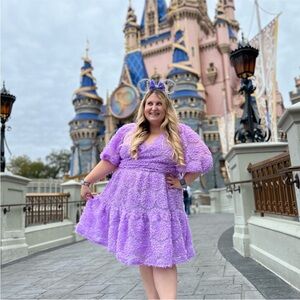 Eloquii Purple Lilac Floral Short Dress Textured Women’s size 16 Coquette