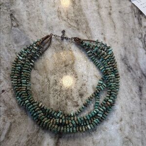 Chic turquoise necklace from Silpada with five separate strands of copper beads, authentic turquoise, and sterling silver. Measures 19 inches without an extender. Brand new perfect gift condition from smoke free and pet free home.