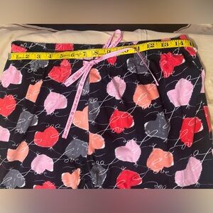 Hue Medium 100% cotton pj loungewear elastic waist bottoms with love and hearts throughout. Adorable pink bow at waist but could be rolled inside. Not too heavyweight or too lightweight just right!