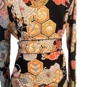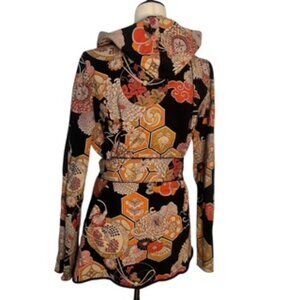 Lucky Brand Hooded Wrap Jacket Asian Floral Pattern Women’s Size XL Black Orange