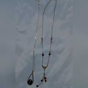 Chic necklace set with gold and silver tones. Features elegant pendant and intricate design. Perfect for any occasion. The necklace with the brown beads and leafs has some discoloration on the big leaf. I took close up of the discoloration its not really noticeable unless you really look.