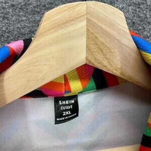 Shein Blazer Women 2XL Orange Geometric One Button Long Sleeve Collared Lined
