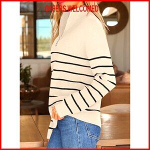 Brand new with tags and in flawless condition — this stylish quarter zip striped oversized sweater offers a cozy, fashion-forward look perfect for casual days, fall outings, or layering for added warmth. The relaxed drape is comfortable, flattering, and effortlessly chic.