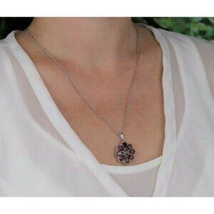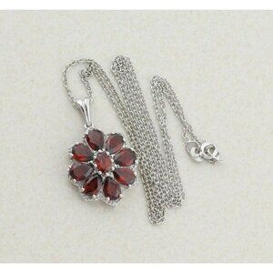 Sterling Silver Garnet Flower Necklace 20 inch Chain