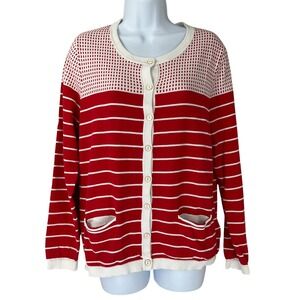 Tommy Hilfiger Womens Red White Striped Knit Cardigan Sz L Casual Prima Cotton