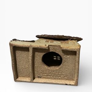Add charm to your home with this rustic cream pottery cottage figurine. Perfect for art lovers and collectors.