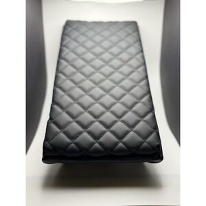 This product is a new black quilted console lid cover made of leather, designed to cover up cracked consoles in cars. It features a universal fitment for the center placement on vehicles, making it suitable for various car models. The sleek black color and quality material ensure a stylish and durable addition to the car's interior. Perfect for those looking to enhance the look of their vehicle's console.