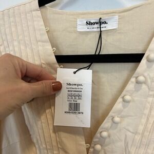NWT Showpo Zandra Mini Dress Puff Sleeve Poplin Dress Beige Babydoll Dress Sz 0