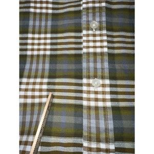 Nordstrom Pure Stuff Men's Size Large Green Plaid 100% Cotton Shirt - Heavyweight cotton very nice. There is a small snag on the sleeve and another on the front of shirt (see photos). Measurements provided in photos are approximate.