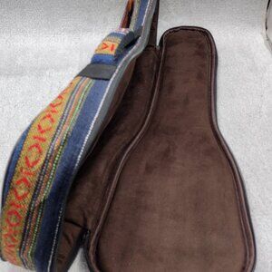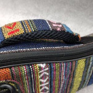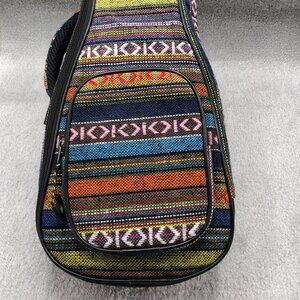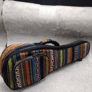 Preowned colorful striped bohemian ukulele gig bag. Soft padded case with lightweight protection. See photos for condition details.