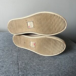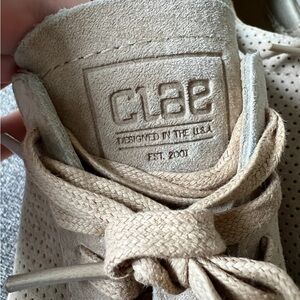 Bradley sneakers from Clae, in size men’s 7. Amazing qualities, perforated suede upper, soft leather lining. Removable cushioned insoles. Lightly worn, there is slight discoloration on the top from being worn with jeans, otherwise no defects (see last photo).
