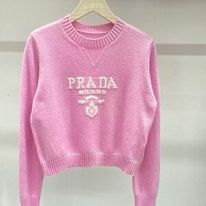 Elegant pink sweater with Prada logo. Soft and luxurious fabric. Ideal for chic layering.