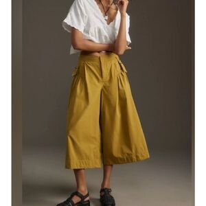 Anthropologie Olive Green Poplin Culotte Pants Size 4
